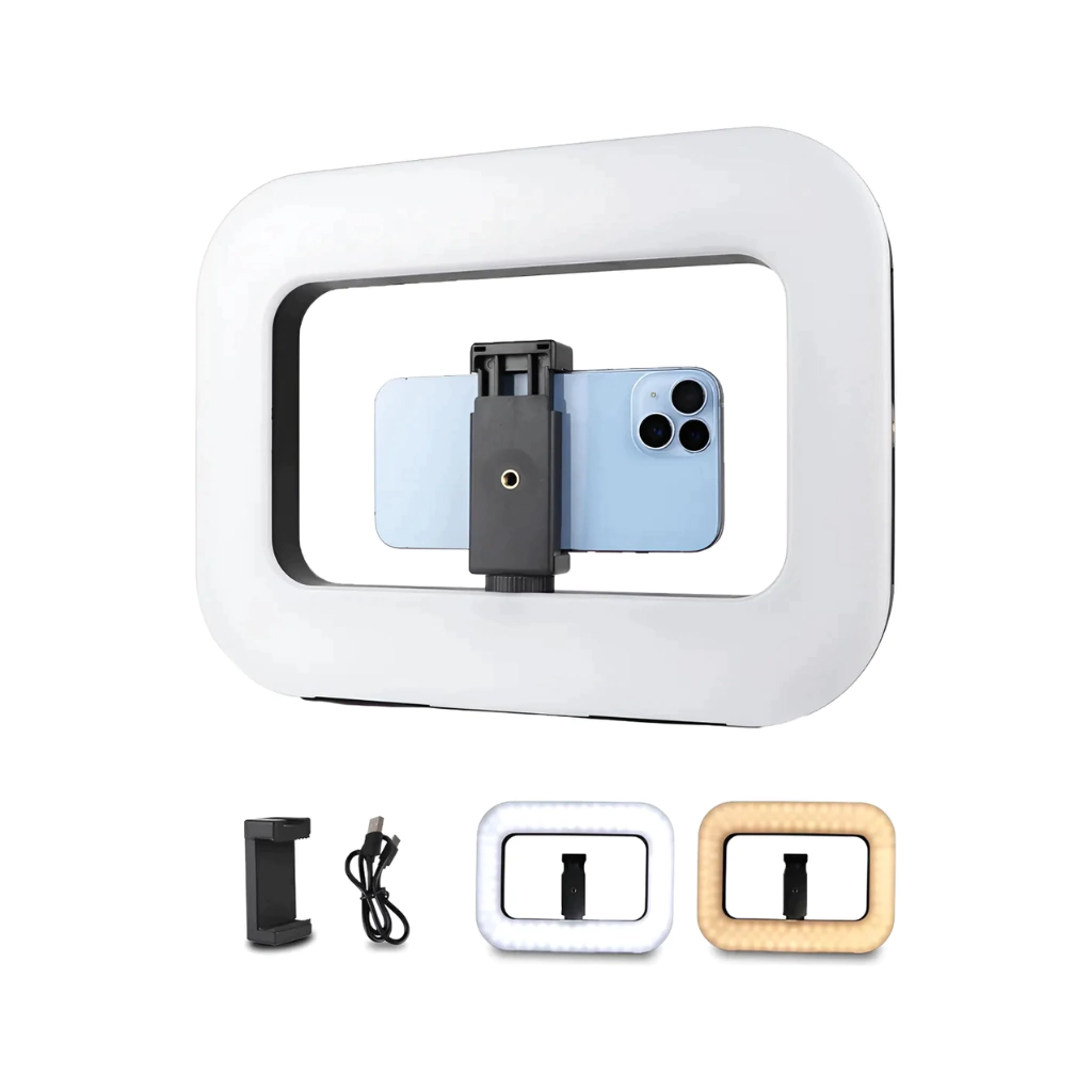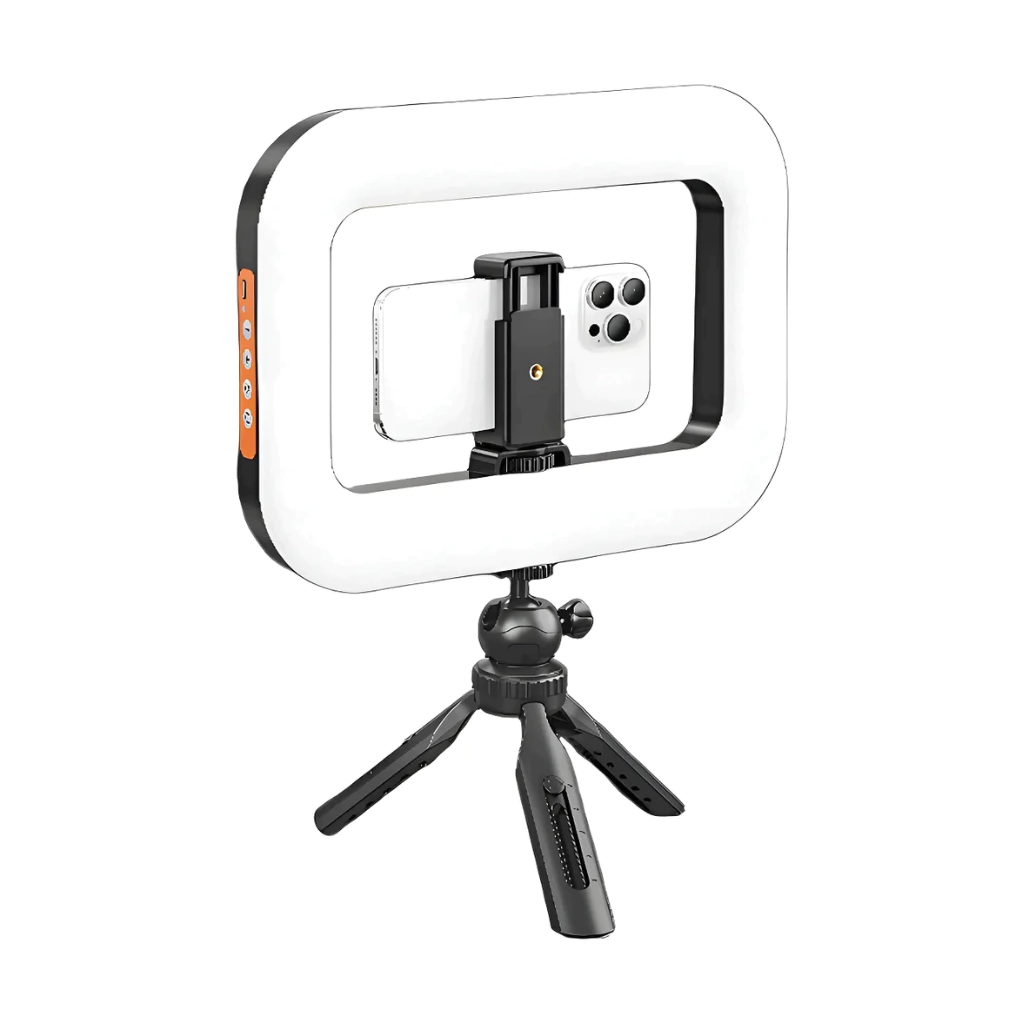 Iluminá tus fotos, videollamadas o grabaciones con el Aro de Luz LED Cuadrado Profesional 20W, diseñado para ofrecer una iluminación más pareja y moderna que los aros circulares tradicionales. Ideal para selfies, creadores de contenido, videollamadas, streaming o maquillaje, mejora tu imagen en cámara de forma rápida y profesional.